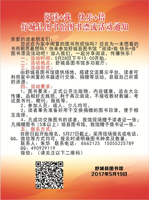 舒城县图书馆图书漂流活动通知