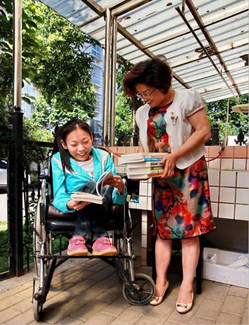 二是开展关爱残疾人活动。5月26日,县图书馆专程来到龙睛雅居小区,给身体残疾的少女悦悦免费办理了一张读者证,并送来了图书和纸笔。这不仅是在传递知识,更是在传递社会对悦悦、对残疾人这个弱势群体的关爱。悦悦从小就因脊柱肿瘤导致半身瘫痪,在读了小学六年以后就辍学在家,但是这个坚强的姑娘并未从此沉沦,而是热爱上了看书、写作和绘画。县图书馆在了解到悦悦的情况后,主动开展上门服务。张兰英馆长把精心挑选的图书送到悦悦手上,把联系电话存入悦悦手机,承诺只需一个电话就可享受送书上门的服务。悦悦捧着图书爱不释手,开心得不得了,她说非常感谢图书馆的贴心服务,有书为伴,她再也不会感觉孤单了。张兰英馆长还与悦悦促膝谈心,对她的写作提出指导意见,并用张海迪、史铁生、余秀华身残志坚的事迹鼓励她要坚持学习、坚持写作,做一个豁达自信、自强自励的人。